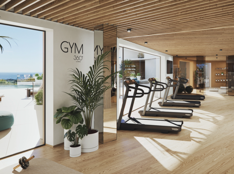 Additional amenities include a wellness spa with infrared sauna, jacuzzi and hammam, coworking and meeting spaces, a community gastro‑bar with social areas, gaming and gamers rooms, and an indoor kids’ playroom, creating a complete lifestyle concept on the Costa del Sol.